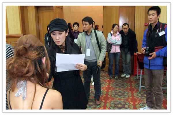 李洪涛老师在“美丽盛典”彩妆造型设计大赛现场指导